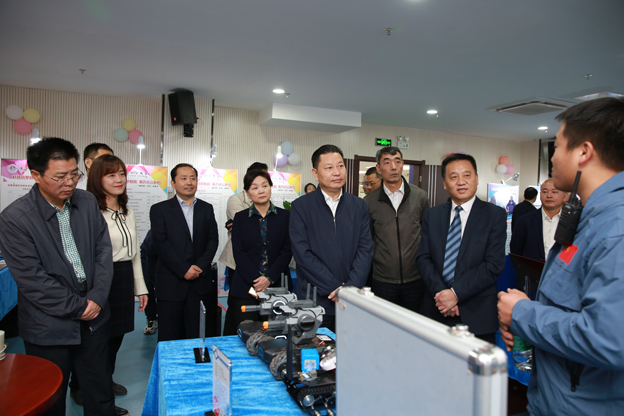 演出结束后,与会领导共同参观了校史馆、教育和科技创新作品展及淮南市非物质文化遗产作品展。