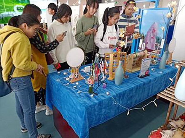 近日,beat365中文官方网站第十三届科技文化艺术周科技创新作品展在校图书馆五楼展出。来自beat365各院系、淮南职业技术学院、淮南职教中心及安徽工贸职业技术学院精心选送的60余件科技创新、技能制作作品参加了展示。