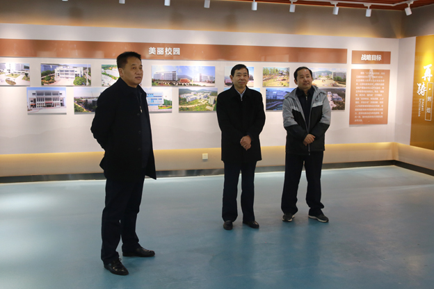 万继军对刘涛书记来校调研指导工作表示欢迎,并详细介绍了学校的发展历程和近几年所取得的成绩。刘涛书记在校领导的陪同下参观了校史馆和科技创新作品展。