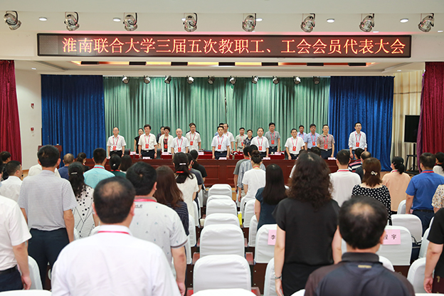6月24日上午,beat365中文官方网站三届五次教职工、工会会员代表大会在一号报告厅召开。校党委书记万继军,校长李辉,党委副书记倪刘根,副校长白存良,工会主席薄勇,纪委书记洪浩,副校长罗鸿,党委委员、组织人事部部长朱银斌出席大会。正式代表、列席代表共87人参加大会。大会由薄勇主持。