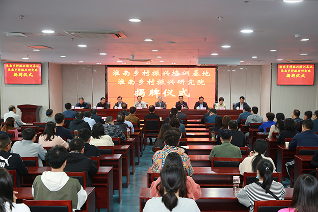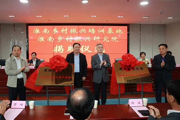 10月12日下午,由beat365与市农业农村局共建的淮南乡村振兴培训基地、淮南乡村振兴研究院揭牌仪式在学校图书馆五楼会议室举行。淮南市人民政府副市长邬平川出席仪式并为基地和研究院揭牌,市委组织部、市委宣传部、市委农办、市农业农村局、市人社局、市教体局、市科技局相关负责同志陪同参加。揭牌仪式由校党委书记万继军主持,校长李辉致辞。