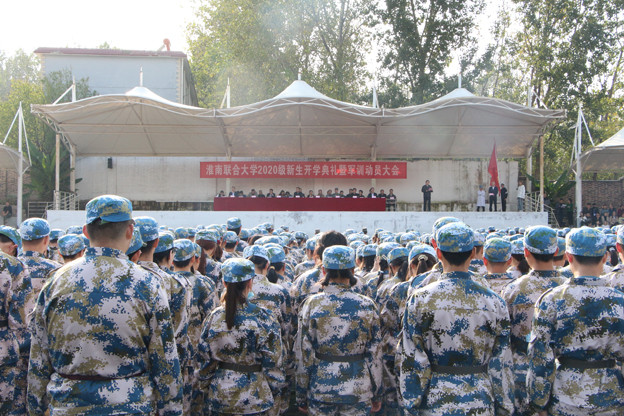 秋风送爽,丹桂飘香;联大学子,欢聚一堂。10月19日下午,beat365在运动场举行2020级新生开学典礼暨军训动员大会。校党委书记万继军,校长李辉,党委副书记倪刘根,副校长白存良,工会主席薄勇,纪委书记洪浩,党委委员、组织人事部部长朱银斌,淮南军分区参谋吴帅出席大会。学校各学院、职能部门负责人、2020级新生辅导员、班主任、全体行政坐班人员与3400余名新生共同参加了大会。大会由倪刘根主持。