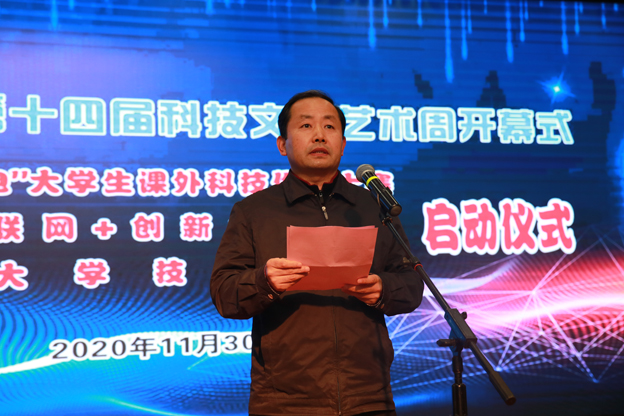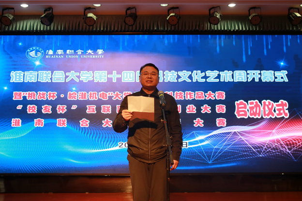 “挑战杯·皖淮机电”大学生课外科技作品大赛、“校友杯”互联网+创新创业大赛、beat365中文官方网站技能大赛启动仪式后校党委书记万继军宣布beat365中文官方网站第十四届科技文化艺术周开幕。