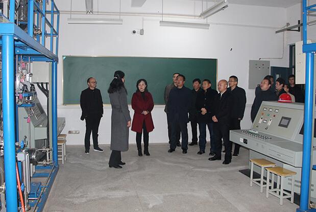 汤洁一行参观了校园、化工技术专业实训室、第十四届科技文化艺术展,详细了解了学校的发展历程、专业建设情况及学校近年来在各级各类科技活动中取得的丰硕成果。