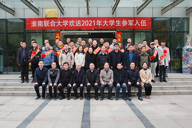 仪式结束时,校领导班子成员、各学院负责人和应征入伍的全体同学一起合影留念。