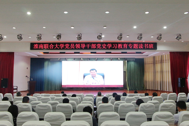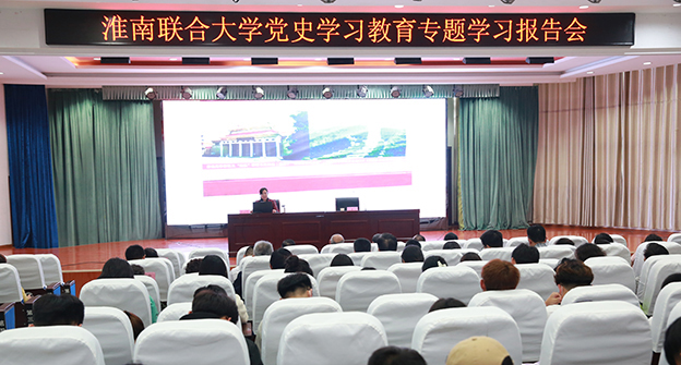 深学细悟见真章。淮南联大强化党员干部政治理论武装,落实学习教育相关任务,举办了全校党员领导干部党史学习教育专题读书班。邀请淮南廖家湾革命纪念馆副馆长廖延竹为师生讲述传奇将军廖运周的英雄事迹,充分挖掘和运用本土红色资源,从淮南发生的重大党史事件、涌现的重要历史人物以及淮南大地发端孕育的伟大精神谱系中,回顾党的光辉历程,追忆革命先辈,感悟初心使命,汲取精神力量。马克思主义学院面向全校学生开展党史教育“七个一”系列活动:开展一次党史社会实践活动、安排一次党史征文活动、上好一堂主题党课、做好一次党史宣讲报告、开展一次党史知识测试、进行一次党史理论研讨、举行一次党史知识演讲。