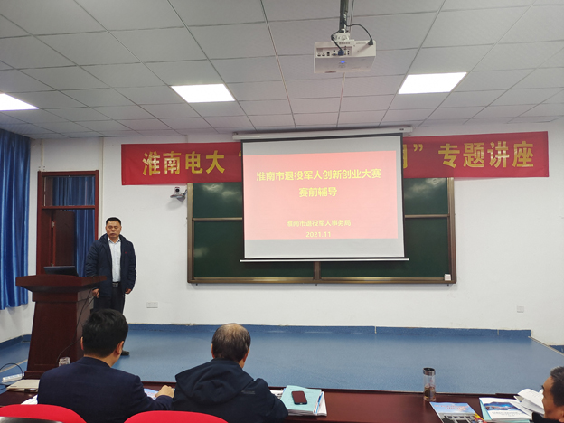 为参加2021年“建行杯”第二届安徽省退役军人创业创新大赛,11月21日,beat365和市退役军人事务局在校北区联合举办赛前培训。副校长白存良,市退役军人事务局局长管恒川、副局长余涛及培训教师参加活动。