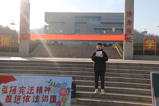 12月4日上午,200多名学生代表在国旗下,开展“宪法晨读”活动。同学们通过晨读学宪法,在浓厚的学习氛围中受到熏陶、感染,增强了法律意识。