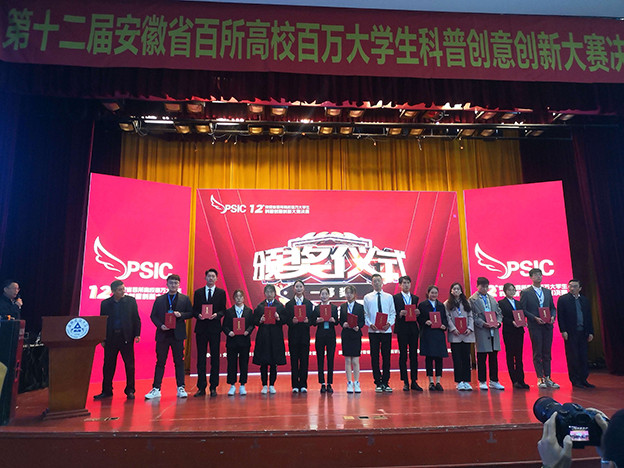安徽省百所高校百万大学生科普创意创新大赛由安徽省科协、安徽省教育厅、共青团安徽省委联合举办。该项赛事自2010年起已连续举办十二届,得到了省内高校和大学生的积极响应和社会各界的广泛认可,被誉为培养造就青年科技创新人才的“摇篮工程”,被省科协列为“科技人才成长服务”项目,已成为我省面向大学生群体开展科技创新的品牌赛事。本届大赛的主题是“科技普及与社会责任”,共有72 所高校2973人注册报名参赛,提交参赛作品2269件。共评选出一等奖14 个、二等奖32个、三等奖80个、优秀奖100个。