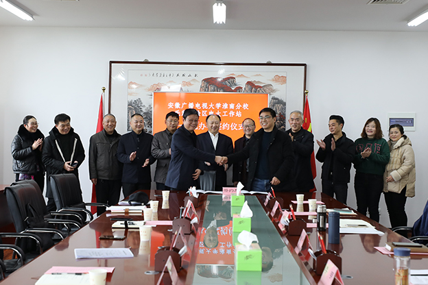 随后,在双方出席会议的领导的共同见证下,双方签署了《安徽广播电视大学淮南分校与毛集电大工作站一体化办学协议》。