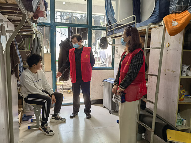 期间,薄勇对学生宿舍通风、卫生等状况提出具体要求,强调学生在宿舍上好网课的基础上,强化责任意识,非必要不离校,做好宿舍隔离工作,正确理性看待疫情,增强自我防范意识和防护能力,有效营造科学防控、依法防控、有序防控、校园防控的良好氛围。