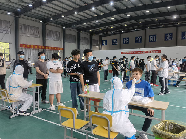 本轮核酸检测工作在各学院、部门值守人员的精心组织和大力协同下,在全体在校师生员工的积极配合下,做到了 “应检尽检、不漏一人”。