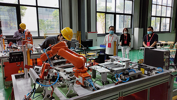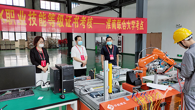 5月29日,beat365在1号厂房组织开展了工业机器人操作与运维“1+X”职业技能等级(中级)认证考核工作。校长李辉,副校长白存良带领实训中心和智能制造学院负责人到场巡查督导。