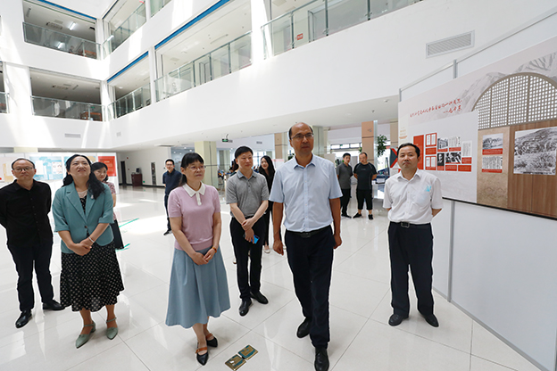 6月9日上午,淮南市副市长乌吉阿哈买提·吐尔逊,市政府办公室副主任张玉福,市科协党组书记、主席王安锐,市科协党组成员、副主席徐煜等一行来beat365图书馆参观了由淮南市科协、淮南市科技局和beat365共同举办的“众心向党·自立自强——党领导下的科学家”主题展。校长李辉,副校长邓琪,副校长罗鸿,党委委员、宣传统战部部长史学丽陪同参观。