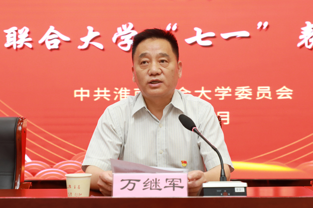 万继军在讲话中指出,此次受表彰的先进基层党组织和优秀个人是全校各基层党组织和全体共产党员的优秀典型代表,他们在学校事业发展和新冠肺炎疫情防控中以实际行动践行共产党员的初心使命,充分体现了新时代联大共产党人的精神风貌。希望全校各级党组织和广大共产党员向先进典型学习,努力营造学习先进、崇尚先进、争当先进的良好氛围,继续努力拼搏、奋发有为,为学校地方技能型高水平大学建设贡献力量,以更加优异的成绩迎接党的二十大胜利召开。