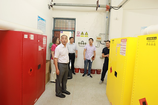 白存良代表学校对专家组的到来表示欢迎和感谢,并简要介绍了学校实验室安全管理工作总体情况。专家组听取了学校实验室安全工作汇报,向学院和职能处室提出了问询,认真核查实验室安全台账,查阅了实验室安全管理工作档案资料,进行了现场访谈。随后专家组对照教育部《高等学校实验室安全检查项目表(2022年)》重点抽取了制药与材料学院、智能制造学院、建筑与艺术学院10间实验室进行现场查看,并与实验室负责人进行了交流。专家组肯定了beat365在实验室安全工作上取得的成效,并对部分实验室存在的典型问题和隐患提出了指导意见。