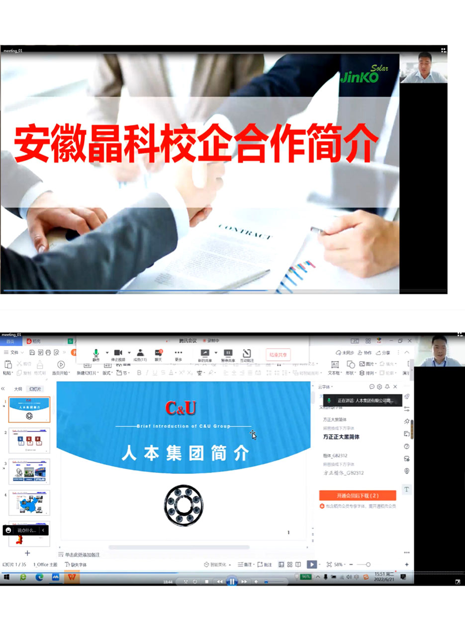 安徽三安光电科技有限公司、人本集团有限公司、安徽晶科能源有限公司等企业代表介绍了企业的发展历程、企业文化和用人需求等,双方就深化产教融合、人才培养、学生就业等方面进行了深入交流。