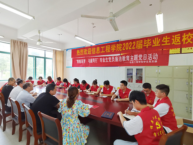 在2022毕业生即将离开母校、踏上人生新征程之时,为进一步加强毕业班党员离校前教育,增强廉洁自律意识,信息工程学院学生党支部组织开展了“青春逐梦,与廉同行”为主题的廉洁教育主题党日活动。副校长罗鸿出席活动。党总支书记方刚,院长方厚加及2022届毕业生党员参加活动。会议由学生党支部书记王艳平主持。