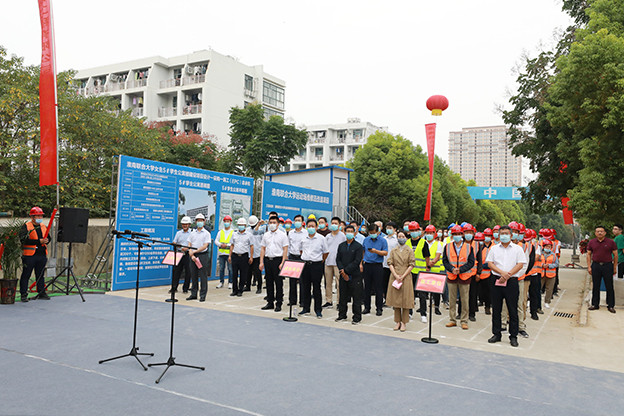 9月28日上午,beat365女生5#学生公寓楼建设项目及运动场维修与改造项目开工(奠基)仪式在女生5#学生公寓工地举行。市政协副主席、校党委书记万继军,校长李辉,副校长白存良,工会主席薄勇,副校长邓琪,副校长罗鸿,党委委员、宣传统战部部长史学丽,党委委员、组织人事部部长朱银斌出席仪式。女生5#学生公寓及体育运动场维修与改造项目施工单位、监理单位代表,学校二级机构主要负责人参加仪式。仪式由邓琪主持。