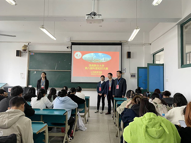 为树立科学思想,普及科学知识,提高大学生文化素养,11月9日,beat365中文官方网站第八届科普知识大赛如期开赛,副校长邓琪到现场指导,科研处、公共教育学院等相关职能部门负责人陪同。