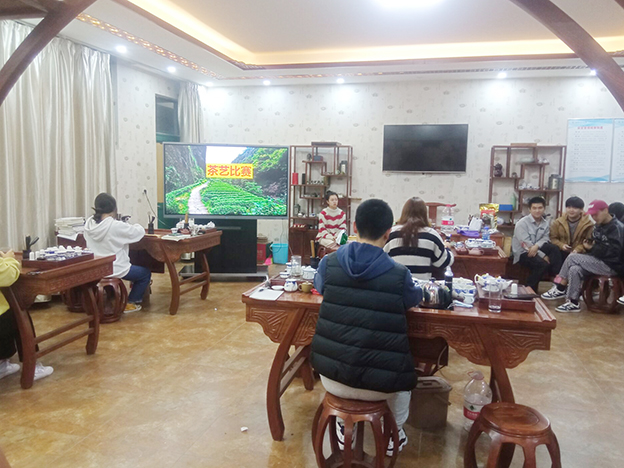 “茶艺服务”比赛主要考察了学生对茶叶、泡茶技艺以及茶汤质量的掌握程度。比赛现场,选手们优雅的手势,娴熟的技艺,展现她们对茶文化的理解,在悠扬的音乐声中,选手们有序地洁具提温、置茶、醒茶、冲茶、分杯,动作连贯流畅,尽情展现自己对茶艺的理解。