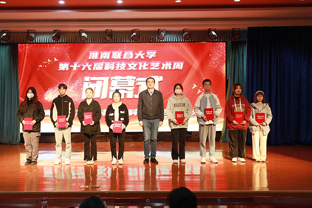 白存良宣布第十六届科技文化艺术周圆满闭幕。他指出,本届科技文化艺术周紧紧围绕“青春建功新时代 科技筑梦向未来”为主题,活动涵盖了思政教育、文艺体育、科普活动、创新创作、成果展示、技能竞赛等十余个主体项目,集中展示了全市职教联盟各成员单位、淮南联大各分校、各学院和教学单位师生,创新创造、积极进取的精神风貌和优异傲人的学习创造成果,经过承办活动的相关部门精心准备、认真组织,各项活动都取得了丰硕成果。希望同学们再接再厉,以更加饱满的精神、昂扬的斗志、务实的作风,在各类科技竞赛中取得更加优异的成绩,在实现中华民族伟大复兴的中国梦的生动实践中放飞青春梦想。