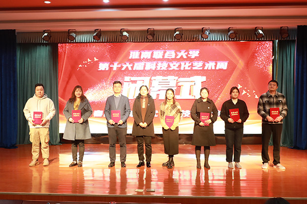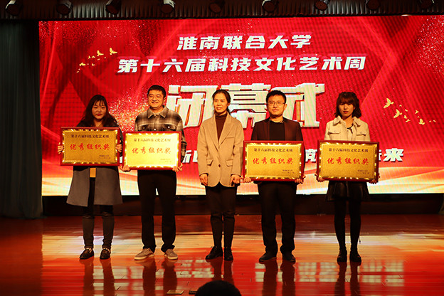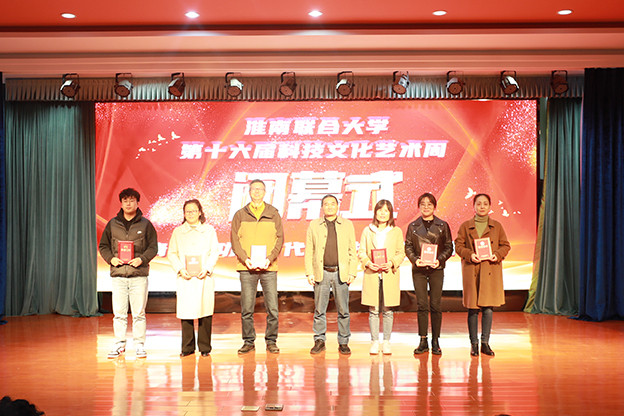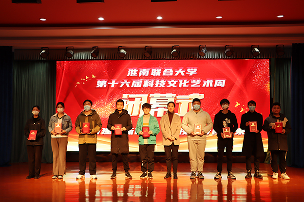 校领导首先为全国大学生第十七届智能汽车竞赛、安徽省教师教学能力大赛、“挑战杯”安徽省大学生课外学术科技作品竞赛、第十六届科技文化艺术周优秀组织奖、第十六届科技文化艺术周优秀指导、书画摄影展、乒乓球比赛、卡拉OK大赛、校园主持人比赛获奖师生代表颁奖。