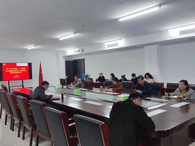 11月17日上午,副校长白存良在图书馆五楼智慧会议室为财资处、武装保卫处、图书馆党支部全体教师以《深入学习党的二十大精神为全面建设社会主义现代化国家而团结奋斗》为题开展党的二十大精神宣讲。