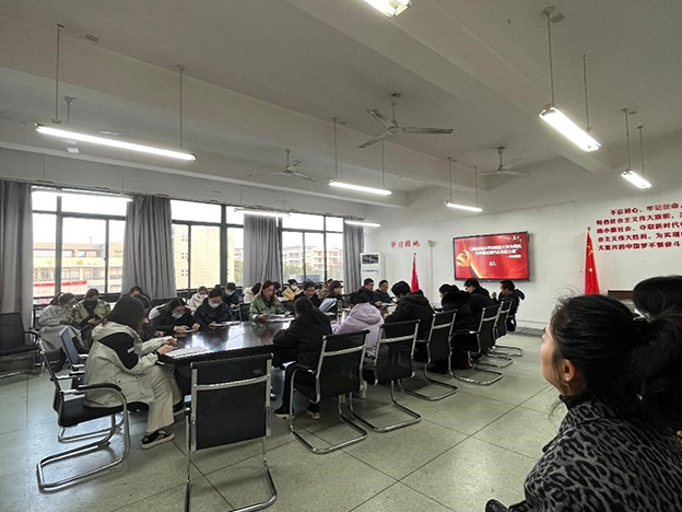 近日,工会主席薄勇赴人文与外国语学院讲授党的二十大精神专题党课,人文与外国语学院党总支书记洪莉、院长马莹以及学院全体教师参加会议。