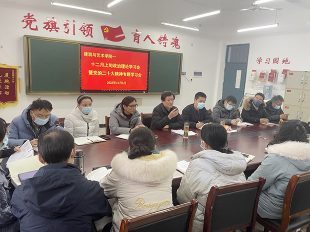 12月5日下午,建筑与艺术学院召开党的二十大精神专题学习会。校工会主席薄勇出席会议。学院教职工、学生代表参加会议。会议由副书记陈磊主持。