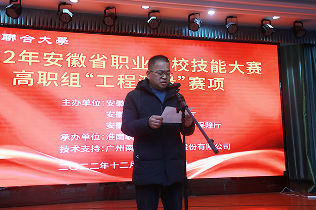 副校长白存良首先致欢迎辞。他向出席开幕式的各位嘉宾表示热烈欢迎,向参加此次比赛的全体参赛选手、领队、裁判员和工作人员表示亲切问候和衷心感谢。他指出,习近平总书记在党的二十大报告中强调,“要实施科教兴国战略,强化现代化建设人才支撑”,“坚持教育优先发展”,“统筹职业教育、高等教育、继续教育协同创新”。举办全省职业技能大赛是把党的二十大精神落实落细的生动实践,是对职业教育发展成果的一次大检阅,是广大师生奋发向上、锐意进取风貌的一次大展示,对进一步宣传职业教育,营造关心职业教育的良好社会氛围,促进职业教育高质量发展具有十分重要的意义。作为大赛的承办单位,我们将严格按照上级主管部门和大赛组委会的要求,严格落实疫情防控措施,把安全办赛放在首位,竭诚为大赛提供支持和服务。