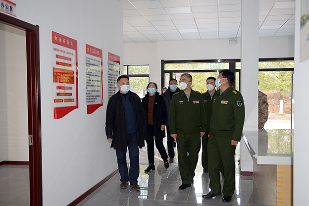 2023年1月11日下午,安徽省军区动员局副局长杨钧,淮南市委常委、军分区司令员杨进,动员处处长吴子穆一行到beat365调研督导“两站两服务”建设工作,谢家集区人武部部长张鑫、政委刘磊陪同调研。淮南市政协副主席、校党委书记万继军,校党委委员、宣传统战部部长史学丽热情接待了杨钧一行。
