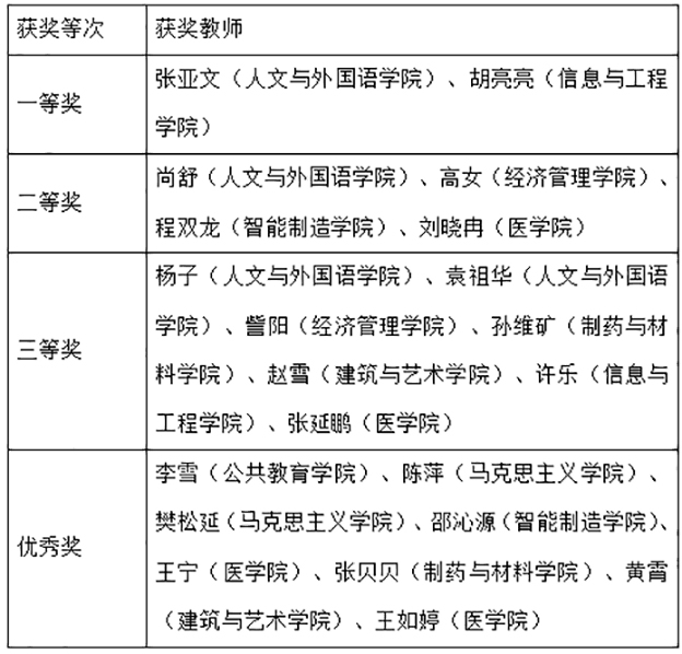 第九届青年教师教学基本功比赛获奖名单