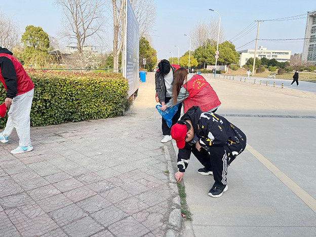 为打造优美整洁、和谐有序的校园环境,做好校园净化绿化美化工作,各党总支、直属党支部每周组织志愿者开展校园环境卫生整治志愿服务活动。志愿者们深入卫生责任区,使用垃圾钳、垃圾袋、一次性手套、抹布等工具对各自划分的公共卫生区域进行卫生清洁工作,全面清理校园路面和花坛、花圃等绿化带的垃圾,努力清扫卫生死角、捡拾烟头、果皮、纸片,带头做校园文明的践行者、传播者和推动者。