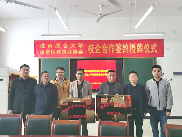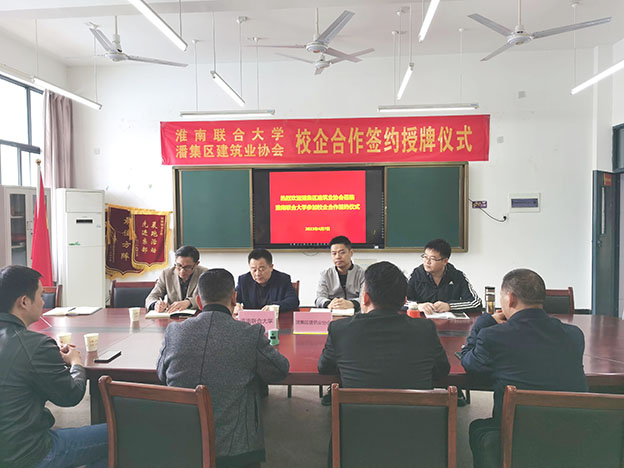 4月7日下午,beat365与潘集区建筑业协会在建筑与艺术学院会议室举行校企合作签约仪式。校纪委书记郑斌,潘集区建筑业协会会长郑传顺,建筑与艺术学院党政负责人出席仪式。