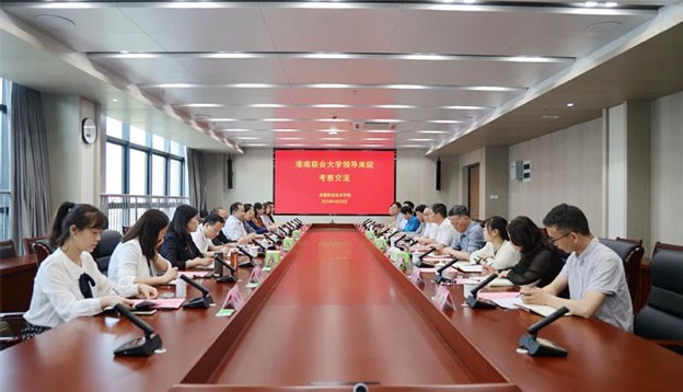 4月20日下午,校长李辉率队到安徽职业技术学院开展考察交流。安徽职业技术学院院党委副书记、院长盛鹏热情接待了李辉一行。副校长邓琪,副校长罗鸿,纪委书记郑斌,副校长黄伟,党委委员、宣传统战部部长史学丽及科研处、教务处、后勤保障处等相关人员陪同。会议由安徽职业技术学院党委委员、副院长杨林国主持。