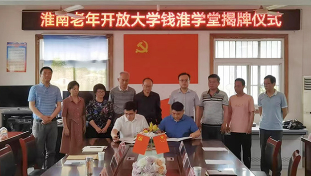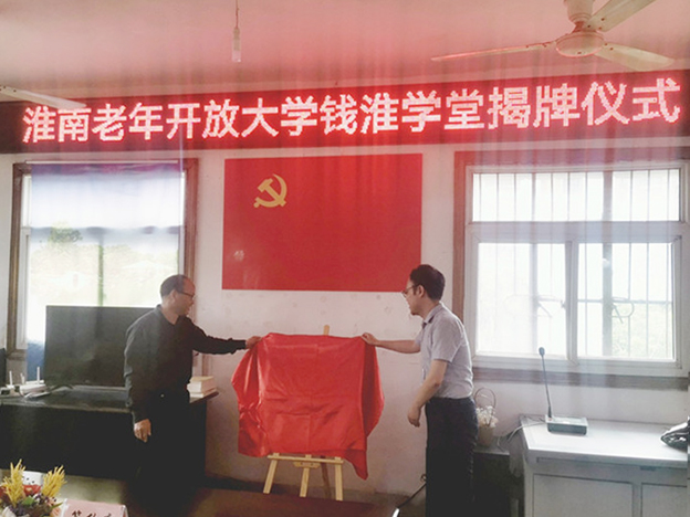 5月17日下午,淮南老年开放大学钱淮学堂揭牌仪式在八公山区钱淮村委会举行。副校长罗鸿、八公山区委组织部副部长宋玉鹏出席仪式,八公山镇党委书记孙大权、继续教育学院党支部书记李明、院长尹建设和钱淮村两委干部、beat365中文官方网站驻钱淮村工作队全体成员参加活动。
