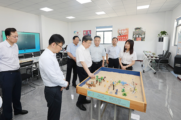 5月31日下午,淮南市委书记任泽锋来校调研教育工作。任泽锋先后来到学校大学生心理健康教育中心、图书馆,实地察看了心理辅导治疗室,参观了职业技能大赛获奖作品展示,听取有关工作介绍,调研了学校职业技能培训工作。