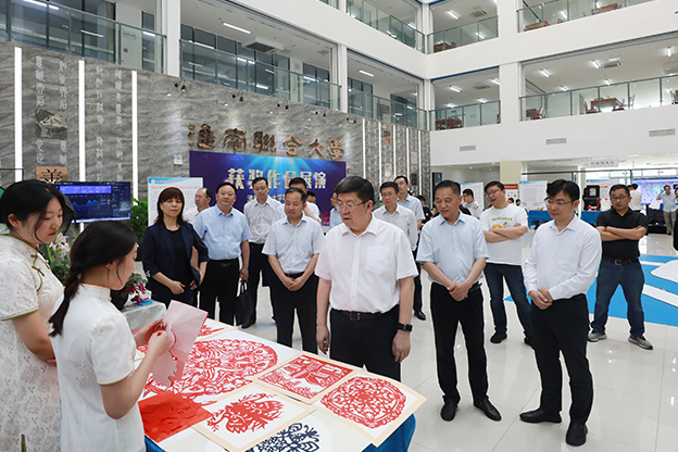 在大学生心理健康教育中心调研时,任泽锋强调,抓好大学生心理健康工作十分重要,要坚持育心与育德相结合,全面掌握学生心理动态,精准做好人文关怀和心理疏导,及时帮助他们解决心理困惑,维护学生身心安全。在校图书馆,任泽锋饶有兴致地参观了职业技能大赛获奖作品展,并与师生们深入交谈,详细询问职业技能培训、产学研融合、参赛作品创意理念及制作过程等方面情况,勉励大家发挥专业优势,不断增强创新能力和创业能力。同时,他希望学校进一步深化职业教育资源整合优化,深入研究、创新各类型、各层次职业教育发展模式,推动中高职一体化发展。