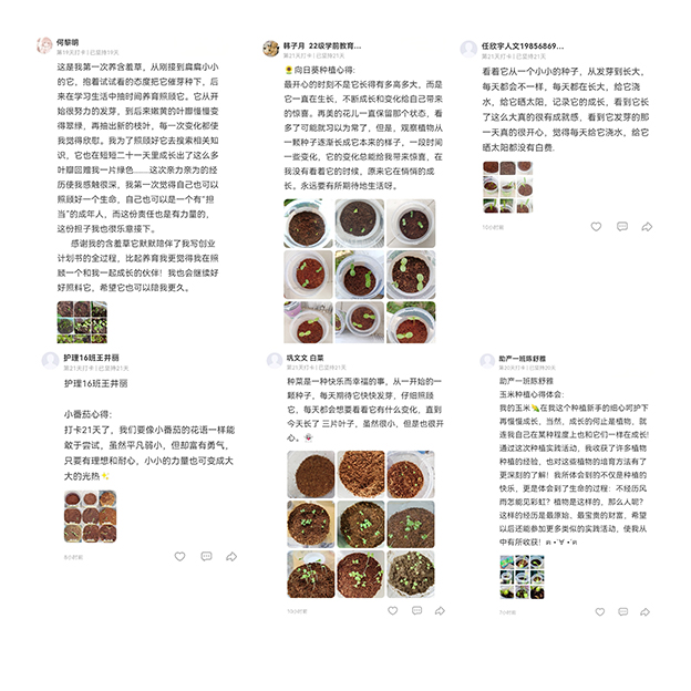 活动当天,同学们在博学路领取花盆、花种和多肉,然后通过微信小程序“鹅打卡”上传种花的照片和心得体会,坚持连续打卡 21 天。