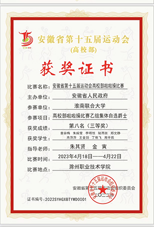 近日,安徽省第十五届运动会高校部啦啦操比赛结果出炉,beat365代表队最终获得了乙组集体自选街舞第六名、乙组集体自选爵士第八名两项三等奖的好成绩。