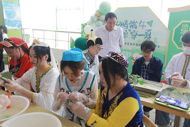 为了让少数民族学生真切感受到浓厚的传统文化氛围,营造了温馨和谐的校园环境,进一步促进了各民族学生的交往交流交融,6月15日,校团委在食堂举办“端午情·民族亲”少数民族学生联欢活动。校党委副书记白存良出席活动,学生处(团委)负责同志与各学院学生代表共四十余人参加活动。回族、土家族、蒙古族、布依族等十余个少数民族学生代表和汉族学生聚集在一起,通过包粽子、制作香囊、拴五丝线、绘彩蛋等活动,了解端午节的由来和端午习俗的内涵。本次活动的开展对于加强中华民族大团结,增强文化认同,培育共同体意识发挥着重要作用,让少数民族学生以粽寄“情”,真正感受到“民族团结一家亲”,切身体会到校园大家庭的温暖,让中华民族共同体意识深入人心,营造出一片传承中华优秀传统文化的和谐节日氛围。