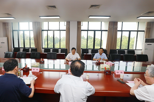 6月20日下午,省委教育工委副书记王佩刚、省教育厅支教办副主任宣洋一行来校调研大学生心理健康教育工作。校党委书记万继军,校长李辉,党委委员、组织人事部部长朱银斌,安徽机械工业学校党委书记、校长徐黎参加调研。
