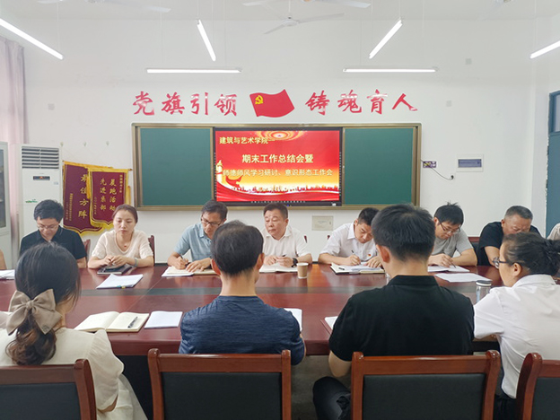 郑斌传达了学校期末工作会议精神。他指出,建筑与艺术学院要按照学校决策部署,紧密结合高水平大学建设、“双高”建设等工作实际,要统一思想,善始善终,全力推进学院高质量发展;全体教师要加强学习,不断提升工作能力,努力规范从教行为,树立良好师德师风形象,自觉加强师德修养,以德育人,以德养人,牢记育人使命,争做人民满意的好老师;学院要持续通过宣讲辅导、集中学习、专题研讨等形式,常态化推进师德师风建设,努力打造出一支忠诚党的教育事业,师德高尚,让学生受益、家长放心、社会满意的教师队伍。