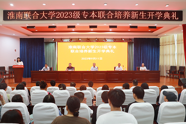 9月11日上午,2023级淮南师范学院与beat365中文官方网站联合培养专升本新生开学典礼在学校南区一号报告厅举行,校长李辉,校党委副书记白存良,副校长黄伟,党委委员、宣传统战部部长史学丽,党委委员、组织人事部部长朱银斌出席开学典礼,教务处、党政办公室以及两个本科班所在学院的负责人和所有专升本新生参加典礼,开学典礼由黄伟主持。