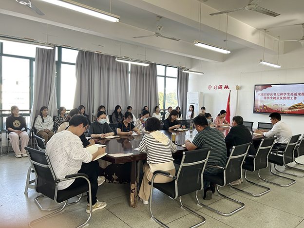 10月19日下午,校党委副书记白存良赴人文与外国语学院调研就业与学生管理工作,学生处相关负责同志陪同调研,人文与外国语学院院长马莹、学院全体专职辅导员及学生代表共同参加会议。