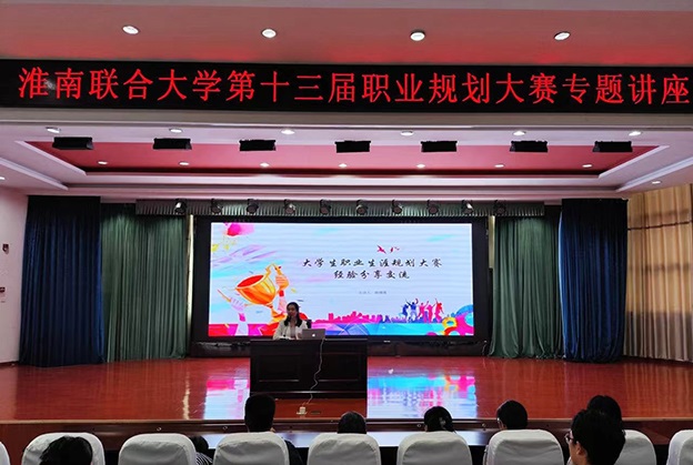 本次讲座邀请了安徽省培训经理人俱乐部理事、全国职业规划大赛指导师、安徽理工大学就业指导大赛一等奖获得者蒋倩倩作为主讲嘉宾。讲座对即将举办的首届全国大学生职业规划大赛的背景、赛程安排、赛事规则和价值导向等方面进行解读,分享了“撰写生涯发展报告、制作竞赛汇报PPT、汇报注意事项”等方面的大赛指导经验。