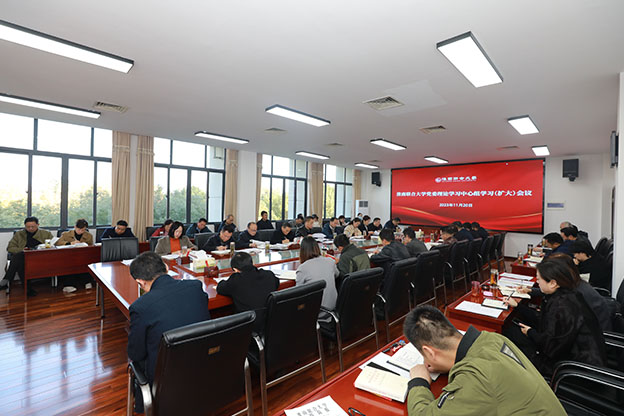 11月20日上午,beat365在办公楼三楼会议室召开党委理论学习中心组(扩大)学习会。校党委书记万继军,校长李辉,党委副书记白存良,副校长邓琪,副校长罗鸿,党委委员孙娟,纪委书记郑斌,副校长黄伟,党委委员、宣传统战部部长史学丽,党委委员、组织人事部部长朱银斌出席会议。二级机构负责人参加会议。会议由万继军主持。