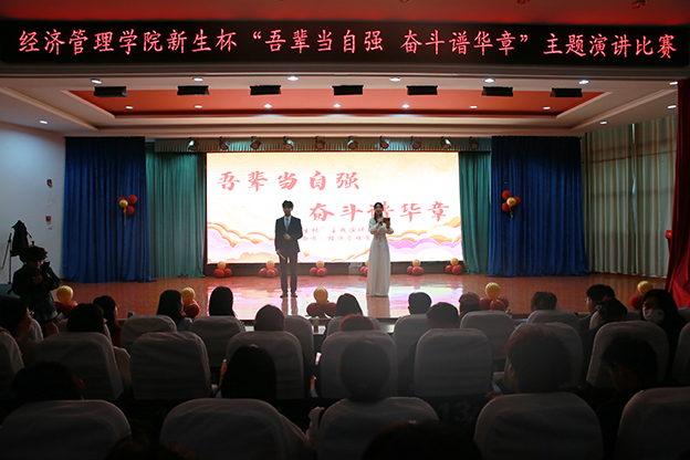 为深入学习贯彻党的二十大精神,进一步推动主题教育走深走实,增强青年学生的思想觉悟和勇担责任的时代使命感,11月21日下午,经济管理学院在南区一号报告厅举办新生杯“吾辈当自强 奋斗谱华章”主题演讲比赛。校党委委员、宣传统战部部长史学丽出席活动,经济管理学院党总支书记杨同前、副院长于胜以及2023级新生班级辅导员担任比赛评委。