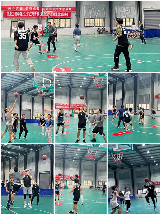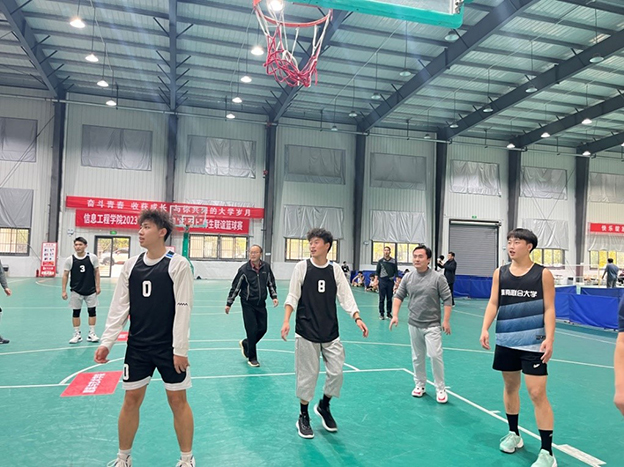 为促进学生加强个人体能素质锻炼,营造和谐的校园氛围,进一步增强团队凝聚力和向心力,展现当代大学生积极向上的风貌,11月22日下午,信息工程学院组织开展了2023“跃动青春 迎‘篮’而上” 师生联谊篮球赛,副校长罗鸿出席活动并与师生同场竞技。学院教职工和专兼职辅导员代表、2022级老生和2023级新生篮球队员参加活动。